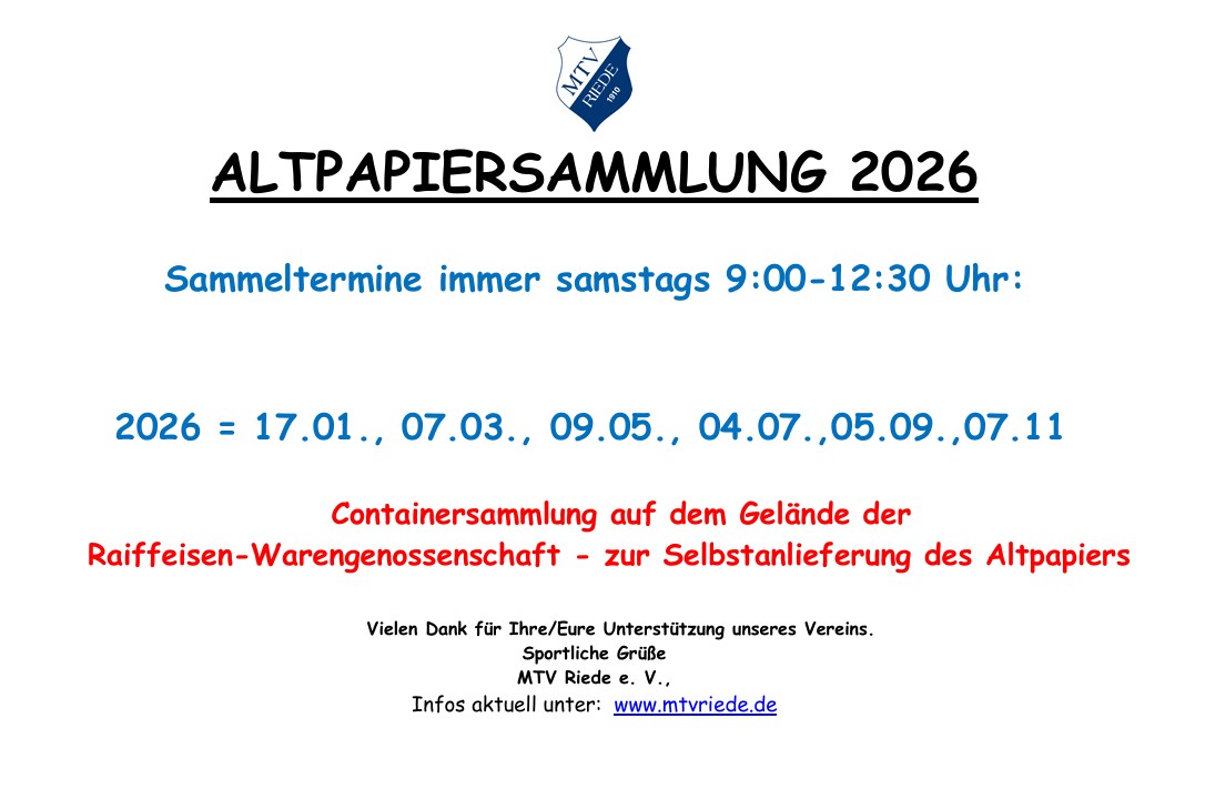 Wir, der MTV Riede, sprechen unseren herzlichen Dank an alle Beteiligten aus: