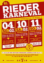 Kinderkarneval in der Heinz-Schreiber-Halle in Riede. Einlass ab 14.30 Uhr auch für Nichtmitglieder. Für alle Kinder bis 14 Jahre ist der Eintritt frei und Erwachsene zahlen 5€. Beginn der Vorstellung ist 15.11 Uhr. Es gibt keinen Kartenvorverkauf.