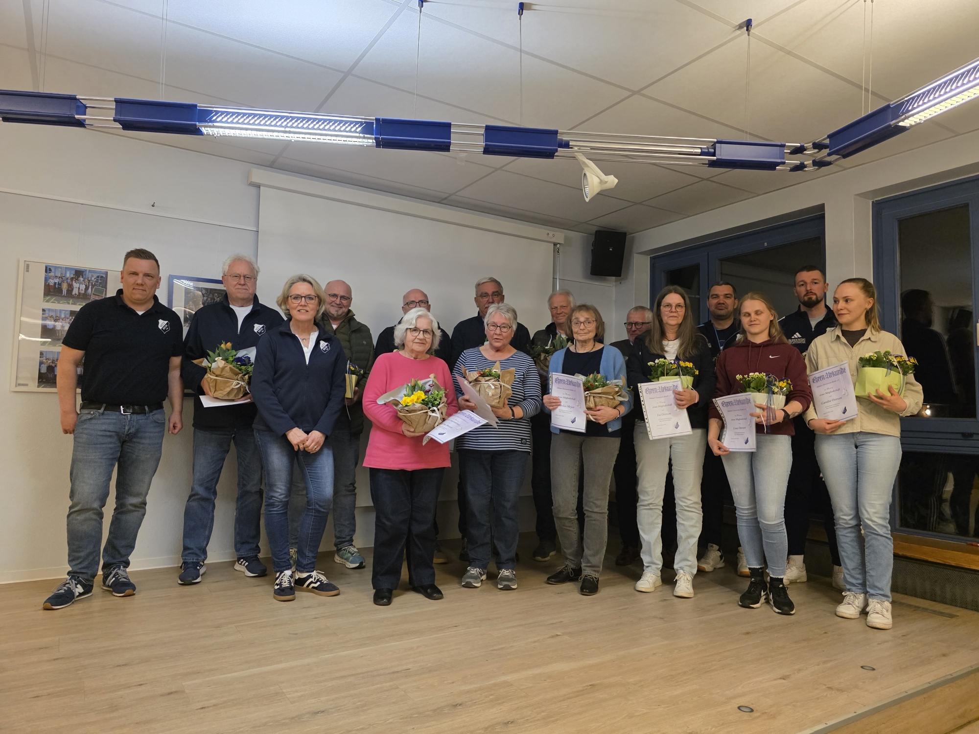 Das Jahr 2025 war geprägt von bedeutenden Maßnahmen zur Verbesserung der Sportanlagen. Besonders hervorzuheben ist die Sanierung des Hallenbodens der Heinz-Schreiber-Halle, die nur durch die Unterstützung benachbarter Vereine während der Bauphase reibungslos für den Sportbetrieb umgesetzt werden konnte. Auch die Umrüstung der Flutlichtanlage am Segelhorst auf LED-Technik wurde erfolgreich abgeschlossen und trägt künftig zur Energieeinsparung bei. Hier gab es fast 85 % Förderungen, so dass die Finanzierung leistbar war. Weitere Projekte wie die geplante Sanierung der Duschräume am Sportgelände Segelhorst sind bereits in Planung. Parallel dazu zeigte sich das Vereinsleben gewohnt vielfältig: Von gut besuchten Fußballturnieren und Karnevalsveranstaltungen über das Sportwochenende bis hin zu Kinder- und Ferienaktionen wurde ein breites Angebot für alle Altersgruppen geboten. Die Mitgliederzahl blieb mit rund 1.120 Mitgliedern stabil. Lange betonte insbesondere das große ehrenamtliche Engagement im Verein und sprach allen Helferinnen und Helfern, Übungsleitenden sowie Unterstützern ihren Dank aus. Kassenwart Axel Heller berichtete von einem positiven Kassenbericht und somit gesicherten Finanzen. Die Spartenleitungen gaben Kurzüberblicke über die sportlichen Aktivitäten und Besonderheiten der verschiedenen Sparten.