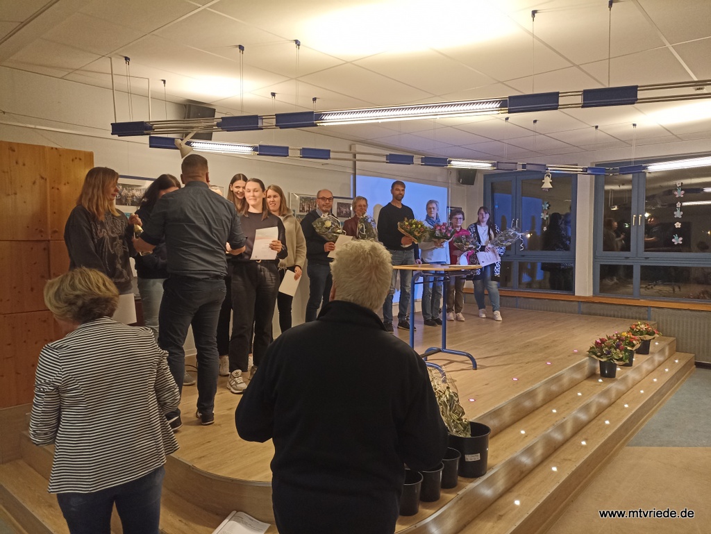 Geehrt wurden in diesem Jahr 50-jährige / 25-jährige Mitgliedschaften (siehe Zeitungsbericht), Horst Schumacher mit dem Ehrenamtszertifikat (10 Jahre), die Handballdamen und das "vierziger Fußballteam" (für Aufstieg und Hallenkreismeister) und aus dem Vorstand Axel Heller und Danny Ohliger, die in kürze die LSB-Silbernadel für 15 Jahre (im Amt als Funktionsträger) überreicht bekommen.
